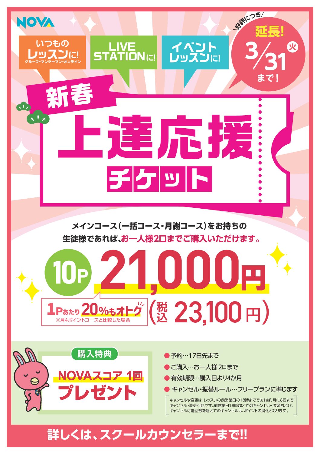 1月~2月末まで販売しておりました「上達応援クーポン」が、