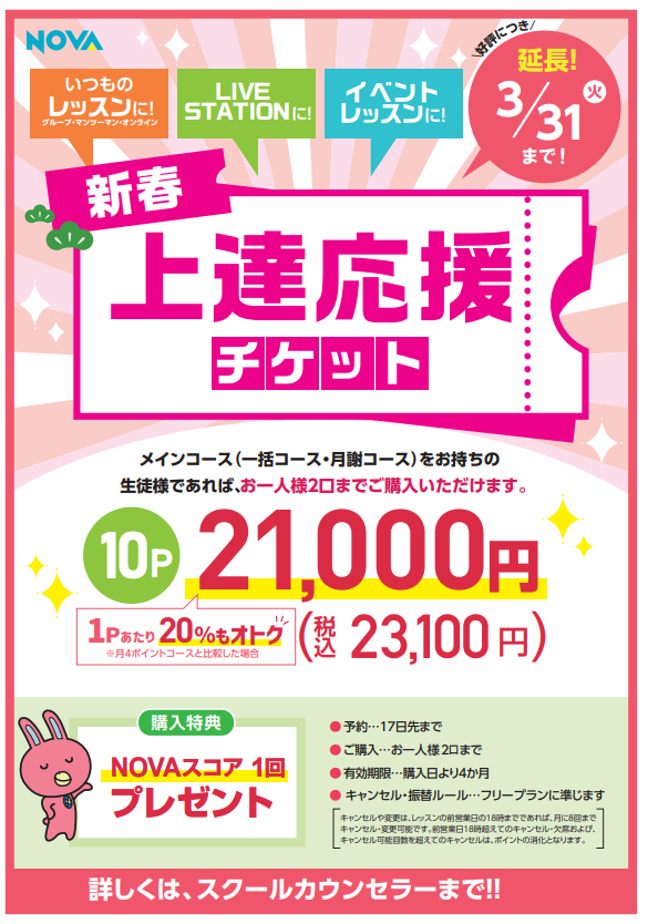 内容・・・10ポイント+NOVAスコア1回付き