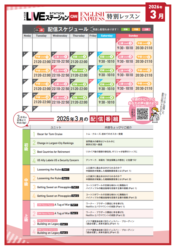 ぜひ3月の「LIVE STATION × CNN ENGLISH EXPRESS」を活用してみてください📚✨