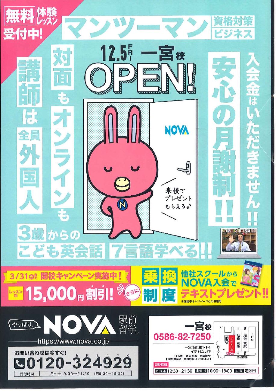 一宮・稲沢・国府宮・江南で英会話スクールならNOVA一宮校!