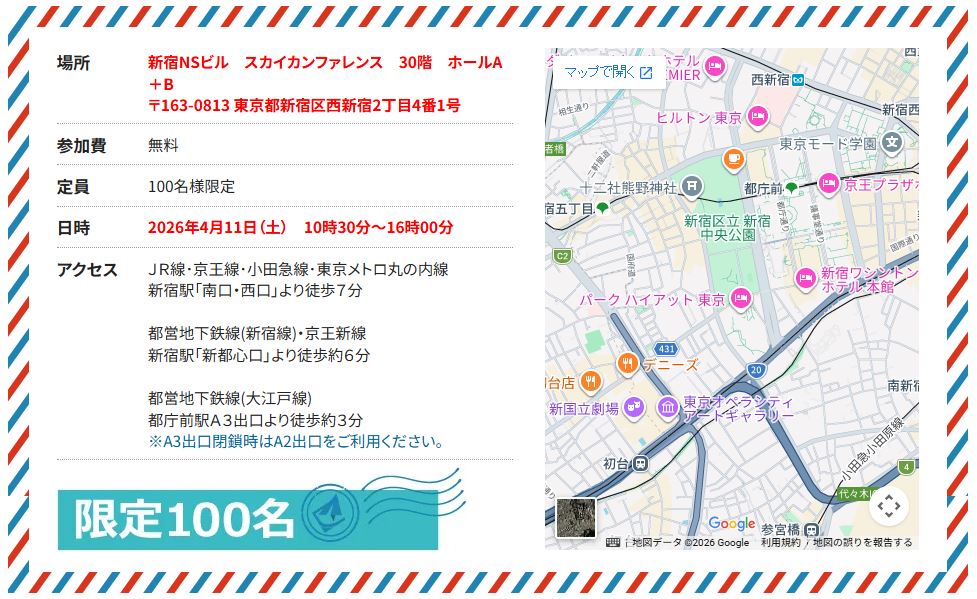 ⚡⚡⚡限定100名様!参加費無料!!!⚡⚡⚡