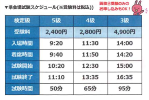 受験可能級:5級~3級(3級のみ二次試験の面接がございますが、二次試験の会場はNOVA本通校とは異なります。会場に関しましては、本会場となりますので、合格次第決定いたします)