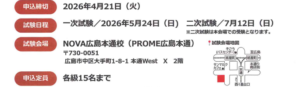 試験日時:2026年5月24日(日)<一次>