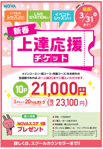 英会話スクール・英会話教室【NOVA二俣川校】上達応援チケット3/31(火)で販売終了!📢