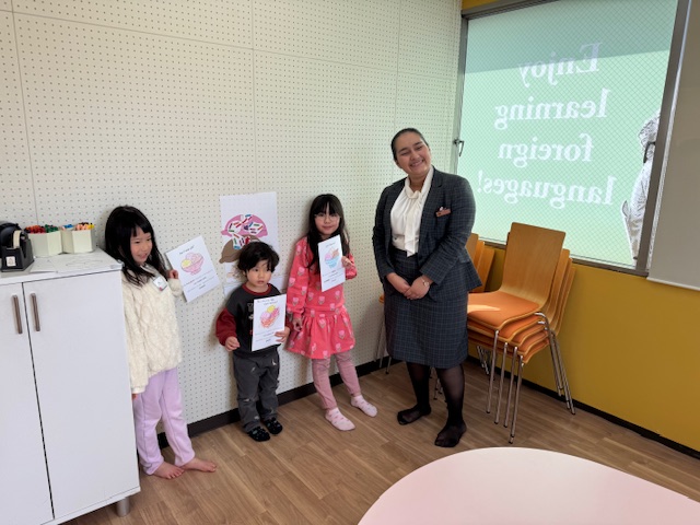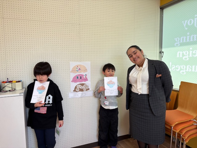また、フレーバーや色について英語でリピートしながら自分の好きなアイスクリームの絵を作ってもらいました🌈🍀