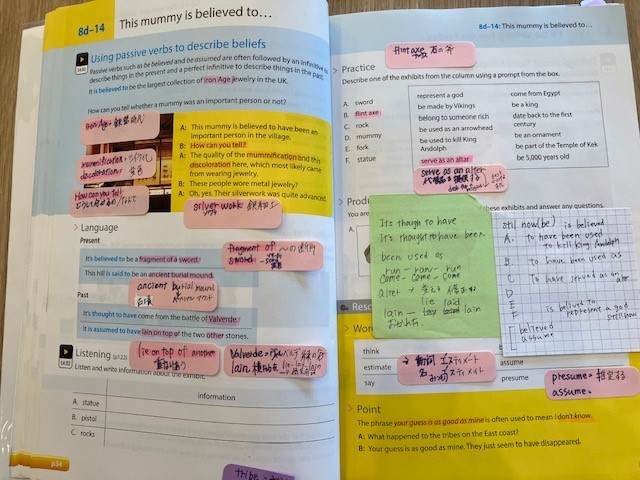 レッスンで習った 文法の要点を 付箋を貼って書き込むことができます!