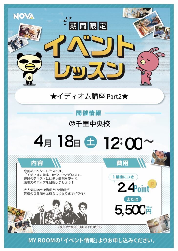 英会話スクール・英会話教室【千里中央校】イベントレッスンのお知らせ🌸