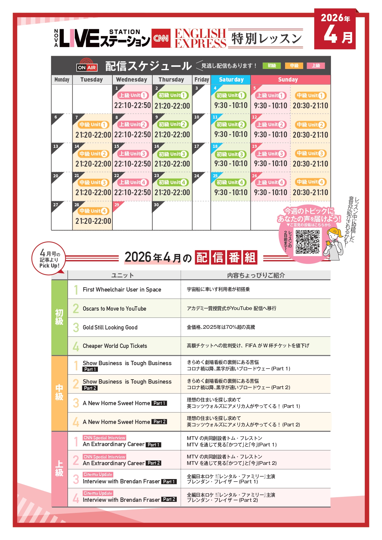 今回は4月度の番組が更新されましたので、そのご紹介をいたします🌸