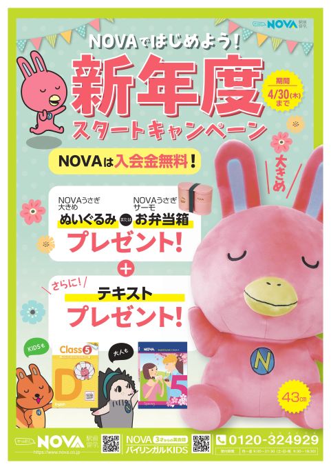 英会話スクール・英会話教室【NOVA福山校】NOVAうさぎプレゼント♪英語始めるなら今!