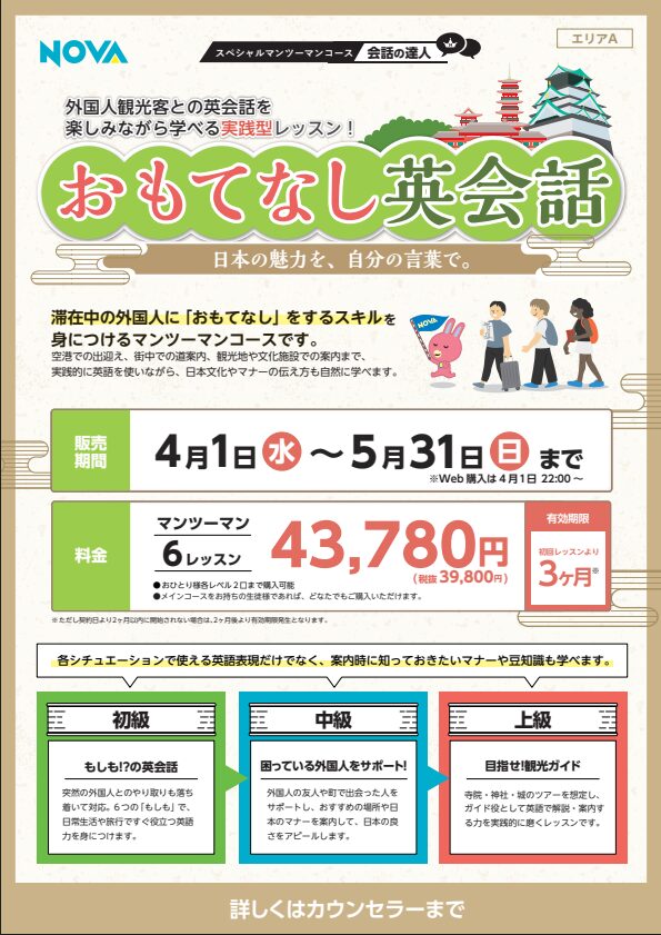 スペシャルマンツーマンコース「おもてなし英会話」が登場!!