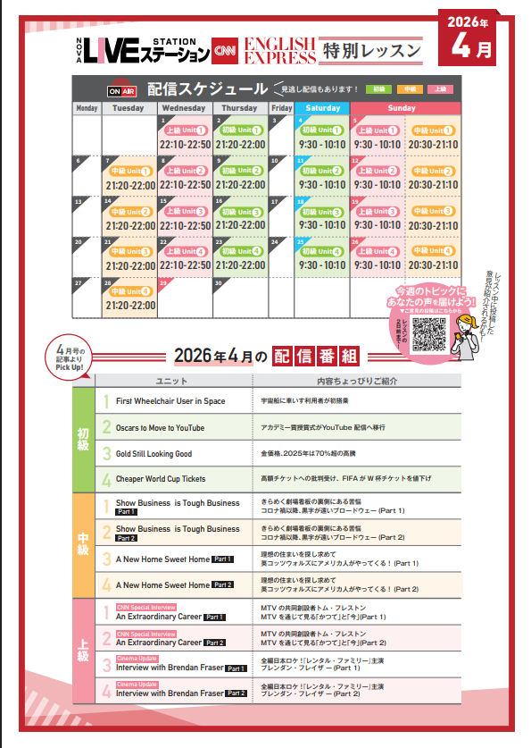 英会話スクール・英会話教室【NOVA八王子校】CNN×LIVE STATION🎧4月の配信番組