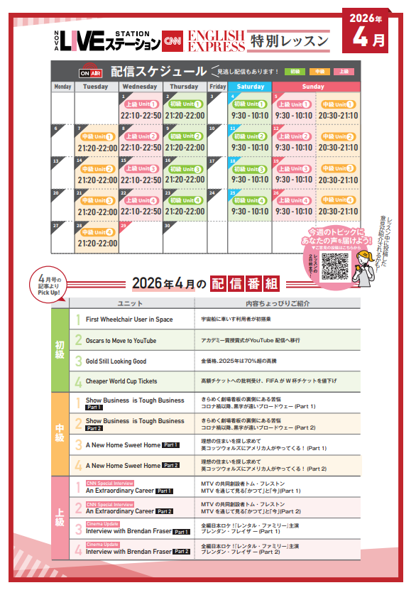 春の訪れとともに、4月の「LIVE Station × CNN English Express」プログラムをご紹介します🌸