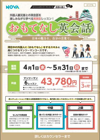 英会話スクール・英会話教室【NOVA流山おおたかの森校】英語でおもてなし🍡