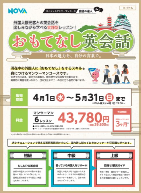 今週は4月からのスペシャルマンツーマンレッスン「おもてなし英会話」についてのご案内です!