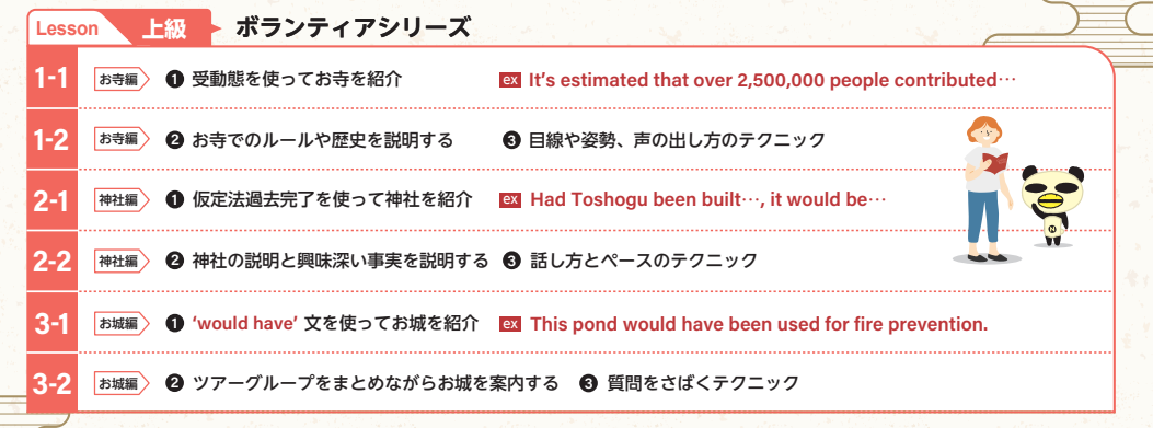 アー想定してガイド役として英語での解説、案内をする練習ができます!
