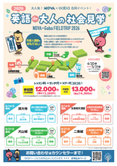 英会話スクール・英会話教室【NOVA新田辺校】学ぶだけじゃない!英語で楽しむ特別な一日✨🌍📚『英語 de 大人の社会見学 2026 』🌞