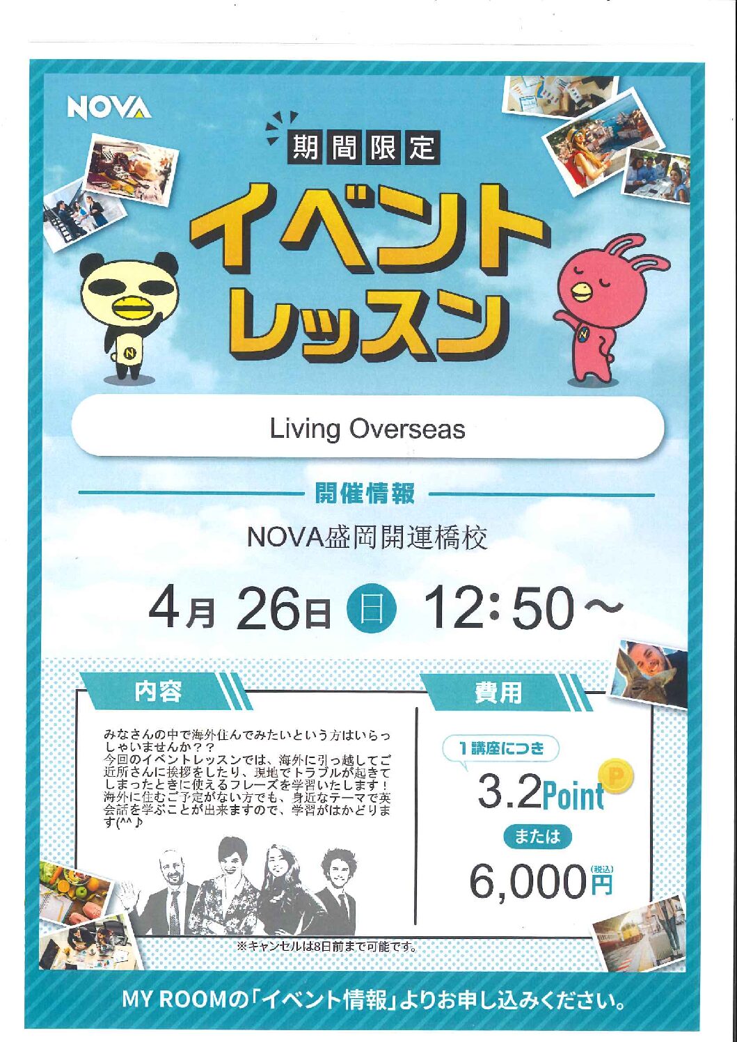 英会話スクール・英会話教室【NOVA盛岡開運橋校】イベントレッスンのお知らせ♪