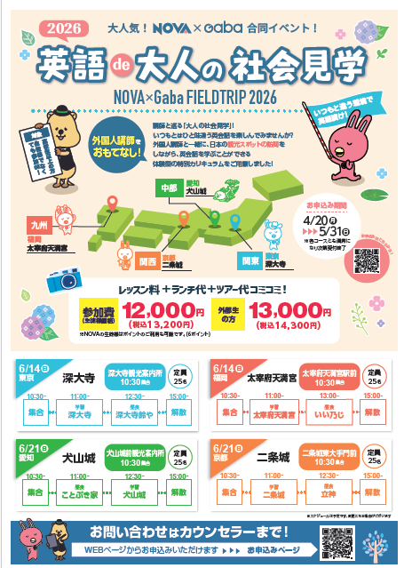 【参加対象者】 NOVA・Gaba共に、高校生以上の生徒様 / 外部生の方