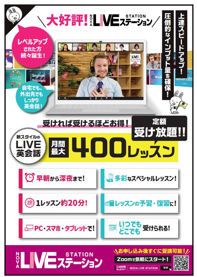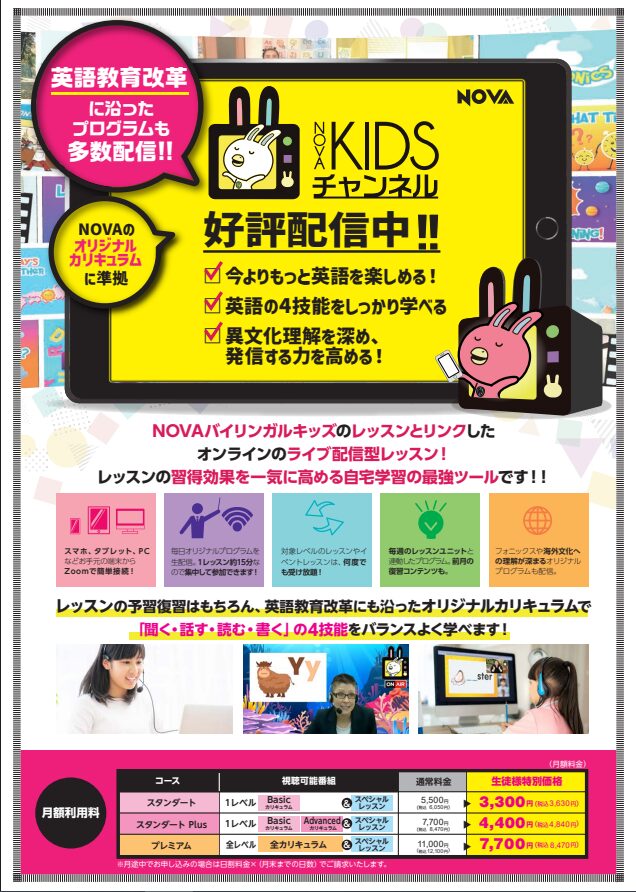 新・お茶の間留学・NOVA LIVE STATION・KIDSチャンネルにつきましては、ゴールデンウィーク期間中も