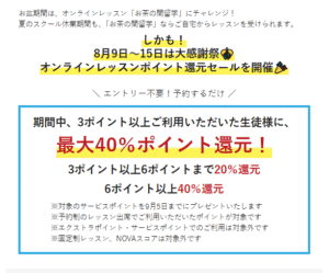 さて、只今NOVAでは!
