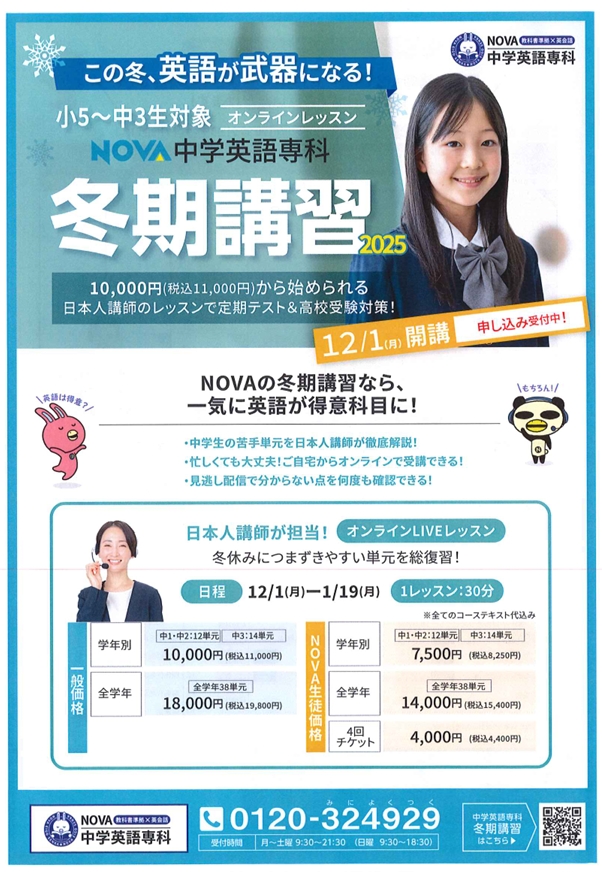 冬期講習にご興味のある方はぜひ、NOVA土浦校までお立ち寄りください♪