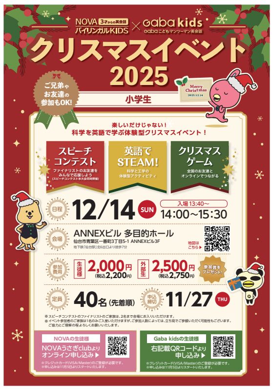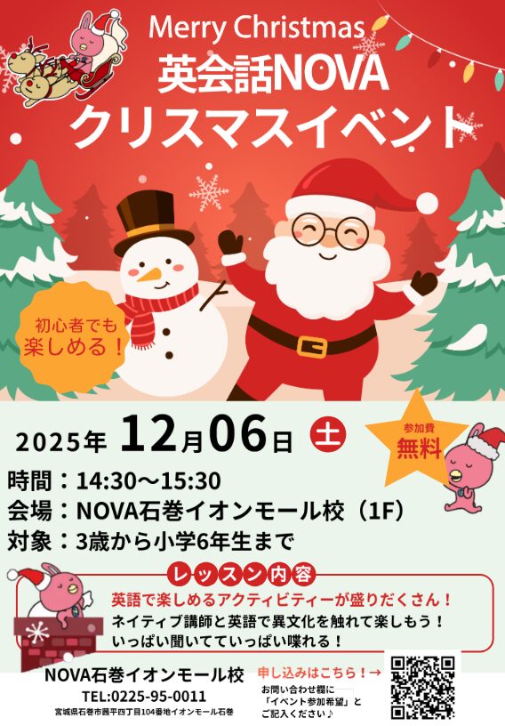 NOVA石巻イオンモール校にて開催!クリスマスイベントのお知らせです🌈💛