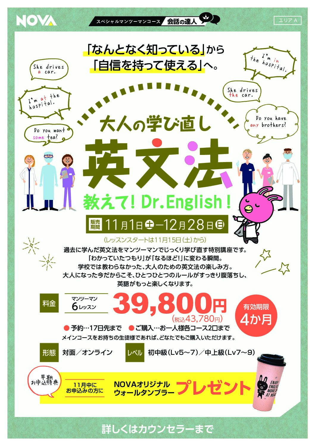 11月から販売を開始しております、中学・高校で習った受験英語では補いきれない、ネイティブならではの視点・ニュアンスで文法を学べるコース