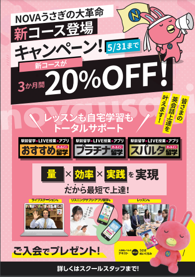 🐰英語学習において最強パック『おすすめ留学』『プラチナ留学』『スパルタ留学』が3か月20%OFF!!