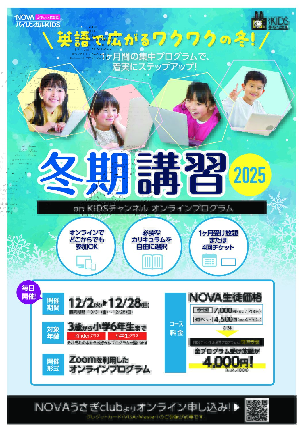 NOVAでは幼児、小学生、中学生向けに冬期講習をご用意しております!