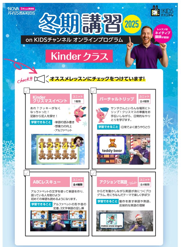 毎年、クリスマスイベントを通じて、英語に興味を持ってくるお子様が多いですっ!⛄