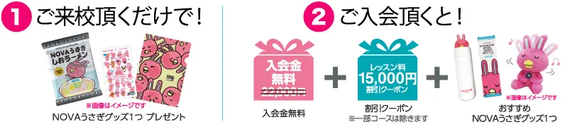 大人:レッスン料15,000円OFF+おすすめNOVAうさぎグッズ1つ