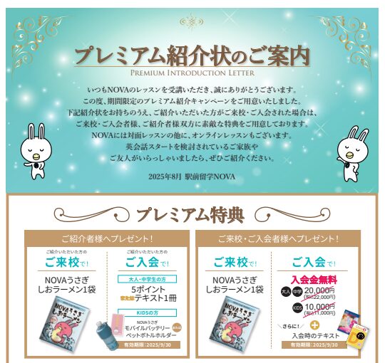 いつもNOVA天神校をご利用いただき誠にありがとうございます!
