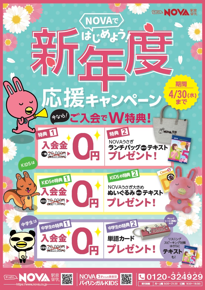 NOVA 青森ドリームタウン校(青森県)英会話スクール・英会話教室はこちら >>