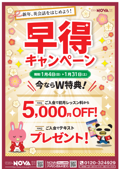 現在NOVAではお得に英会話を始められるキャンペーンを実施中です!🌸