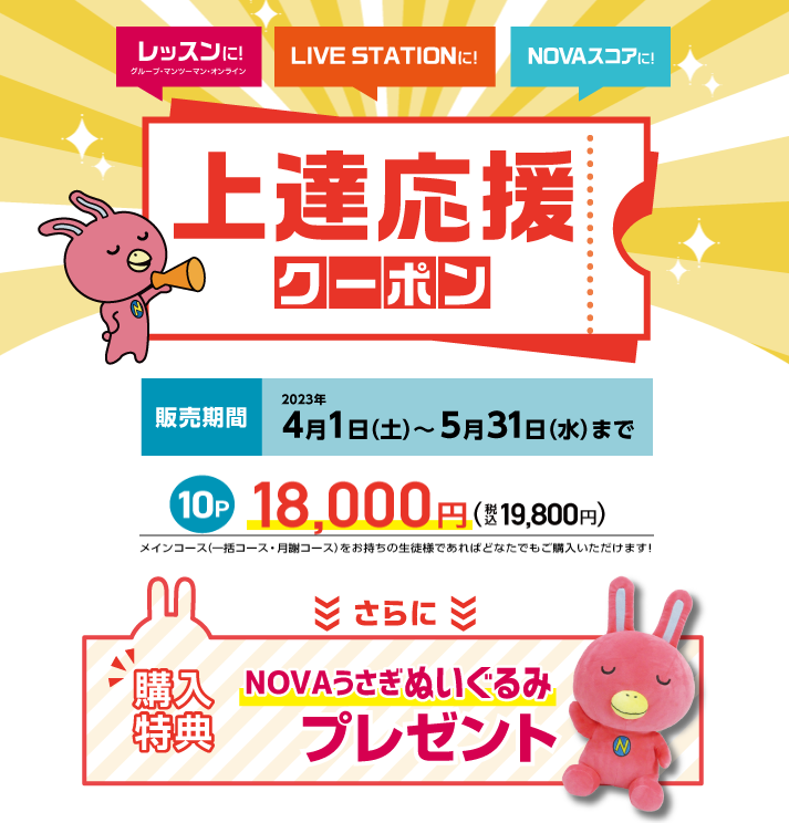 NOVAの無料体験レッスンとキャンペーンを実施中!!
